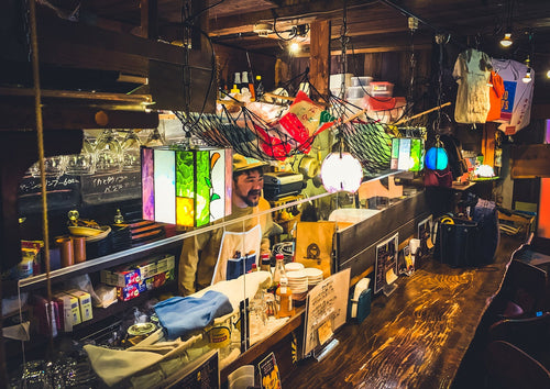 夜の訪れとともに多くの酒飲みが集まる長横町れんさ街。バラエティ豊かな店が立ち並び、それぞれ個性ある看板が点灯すると、まるで異世界のよう。まんまるな看板に明かりを灯す〈無国籍居酒屋BON〉も、ユニークなお店のひとつです。足を踏み入れるとそこは“無国籍”。でも、無国籍ってなんだろう? 店長の「かっぱさん」に案内してもらいましょう。