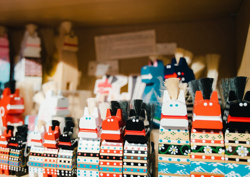 しかしこちらでは、ほかでは見ることのできないカラフルな八幡馬の姿がありました。伝統工芸品と現代のデザイナーがコラボして生まれた、カネイリオリジナル“四季”をモチーフとした八幡馬です。可愛らしいデザインで思わず手に取ってみたくなりますよね。