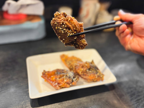 そして肉の大きさにもご注目ください! 大きめの手羽先は肉部分もあり、揚げてパリパリになった部分も食べ応え抜群です。さらにタレの味が染み込んだ手羽先は、骨まで“さずって”食べてしまうほど。確かにこれは絶品です!