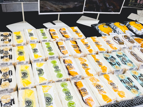 所狭しと並ぶ「ふるーつサンド」たち、そしてよく見るとパンとパンの間にぎゅうぎゅうに挟まっているフルーツたち……一刻も早くそこから出してあげたい!!